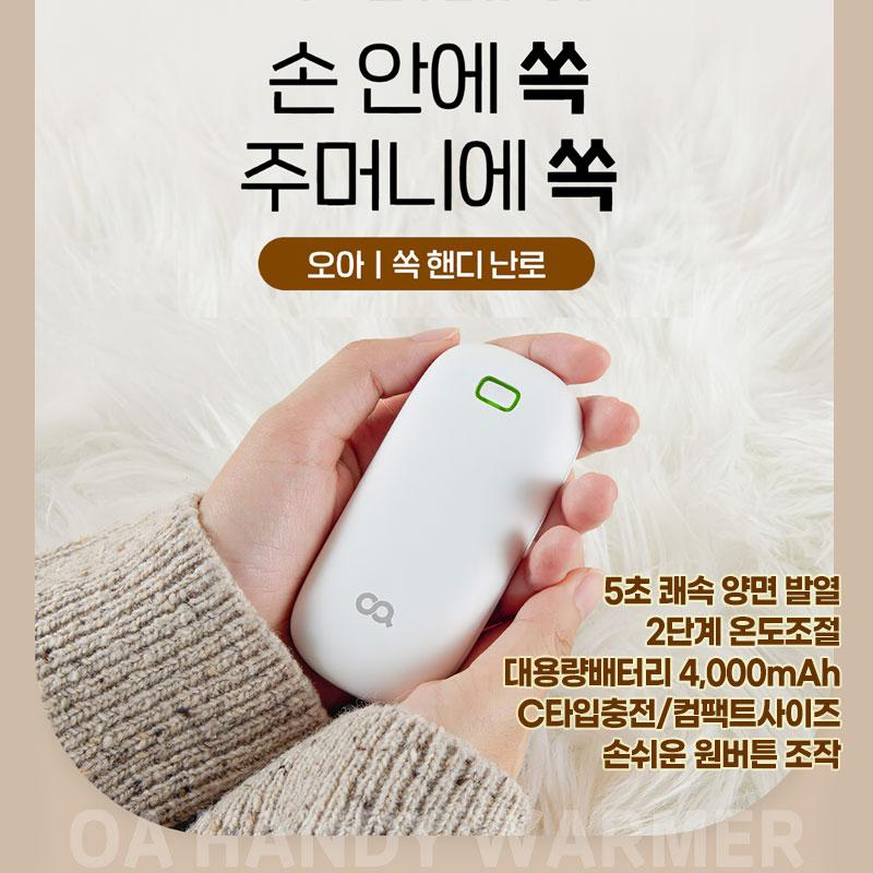 [오아] 미니 쏙핸디 USB 충전식 휴대용 전기 손난로 핫팩 대용량 보조배터리 H0218